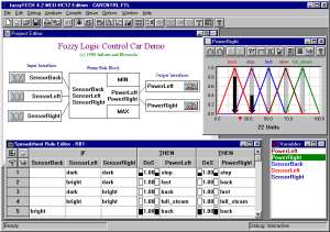 可程式控制 – 提供模糊邏輯函數方塊,整合至PLC可程式控制器與程序控制系統,以歸屬函數、MIN-MAX推論、反模糊化方法與即時監控功能,完成模糊邏輯系統。支援Klockner-Moeller、Foxboro/Eckardt IAS等程序控制。